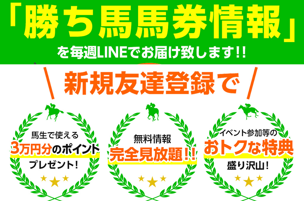 毎週LINEで勝ち馬情報が無料で届く📩 期間限定で30,000円分もらえるキャンペーン実施中✅